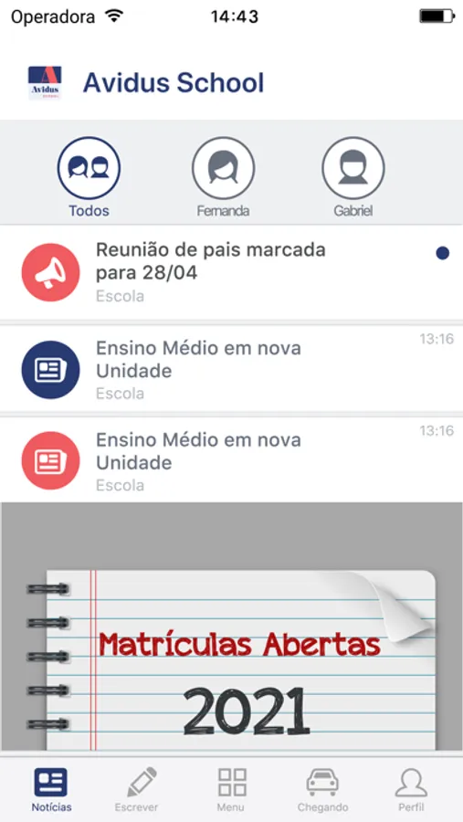 Avidus School! Acesse as informações da escola através deste aplicativo.