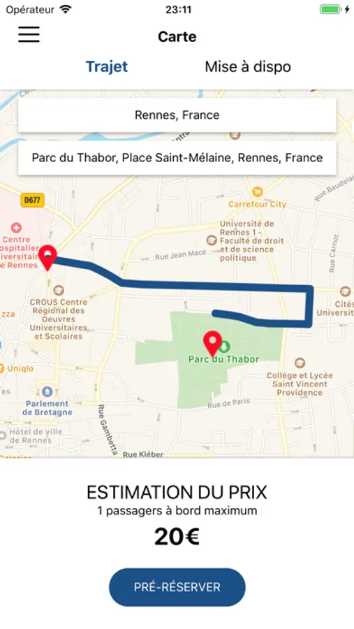 - Ouvrez l’appli et indiquez nous votre destination.