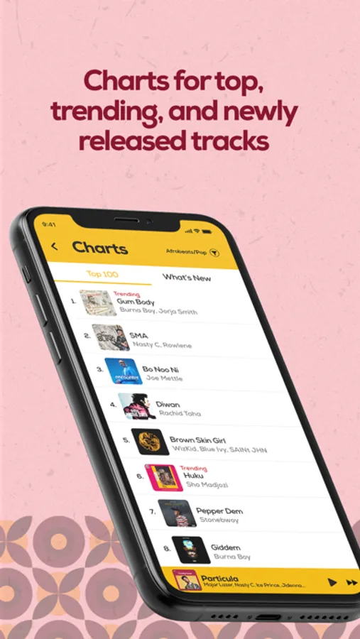 * Charts for top, trending, and newly released tracks