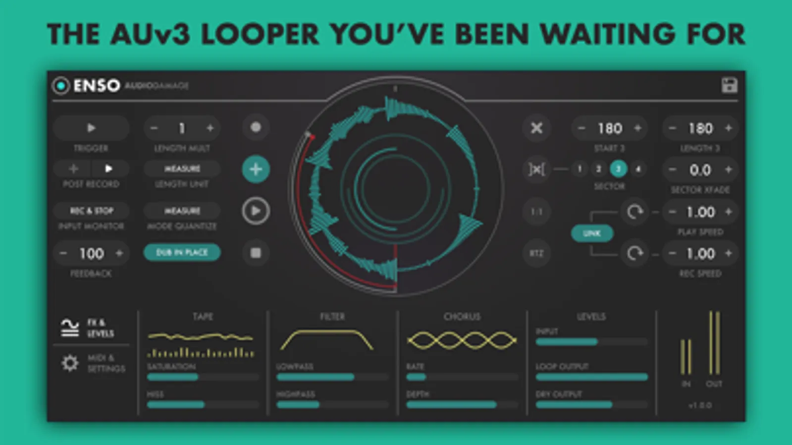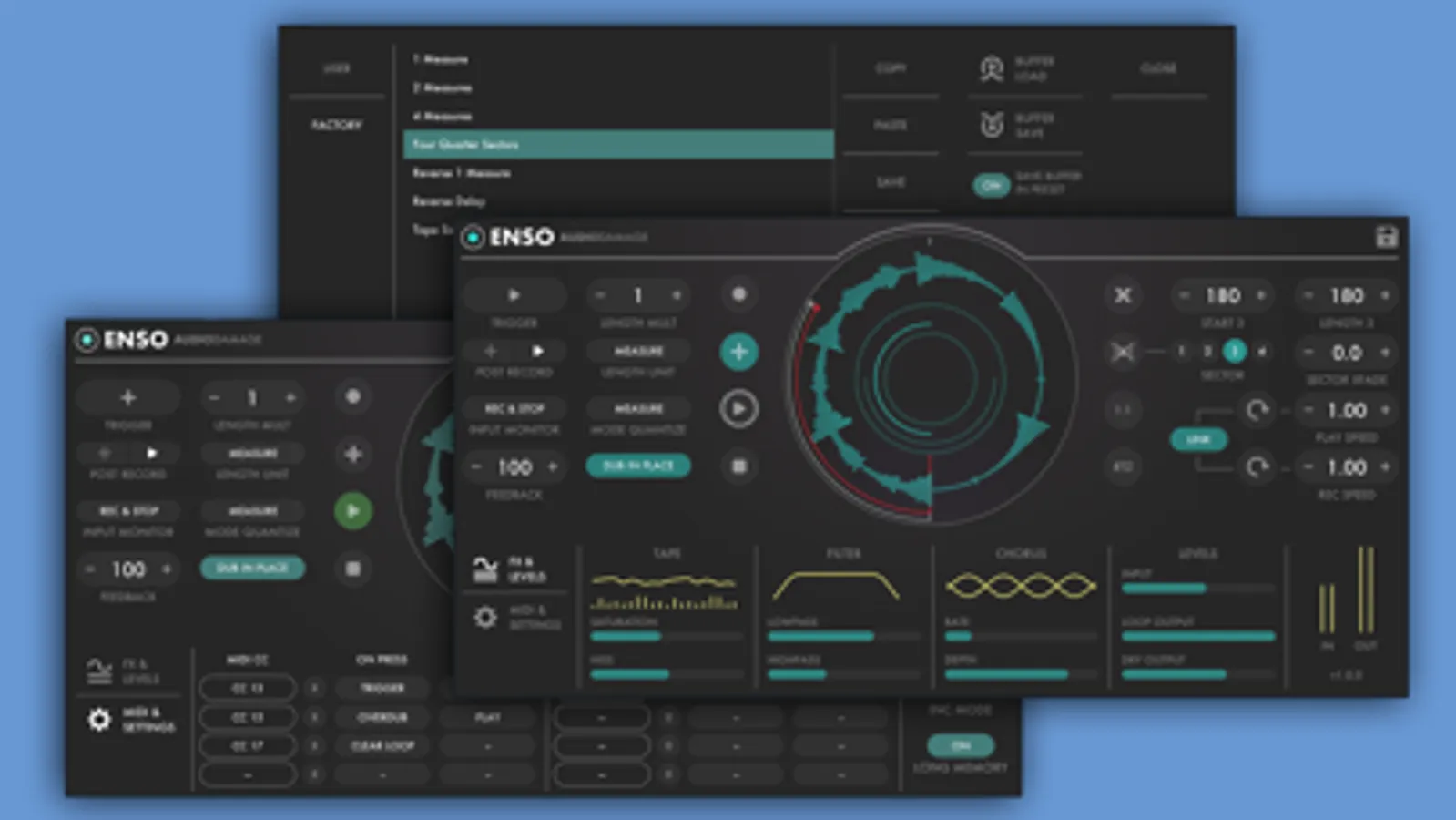 An architecturally unique and sonically characterful looping toolkit for producers and live performers, inspired by both modern looper pedals and vintage tape-based setups, Enso combines elegant and intuitive UI design with a deep but accessible feature set and stellar sound quality.