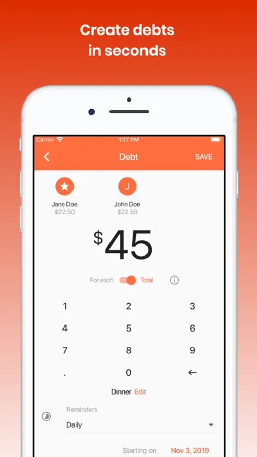 - Create recurrent debts. (Monthly, Bi-Weekly)