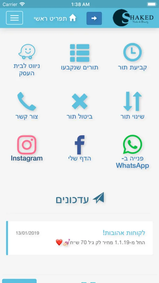 באפליקציה אפשר לקבוע תור, לנווט באמצעות Waze ולפנות אליי באמצעות ווצאפ.