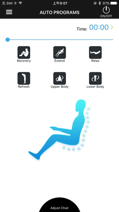 The Daiwa Solace Massage Chair App connects wirelessly to your Solace chair using Bluetooth. Use the app to access the controls, including activating manual and automatic massage programs, targeting massage to different parts of your body, or varying the massage type and intensity.