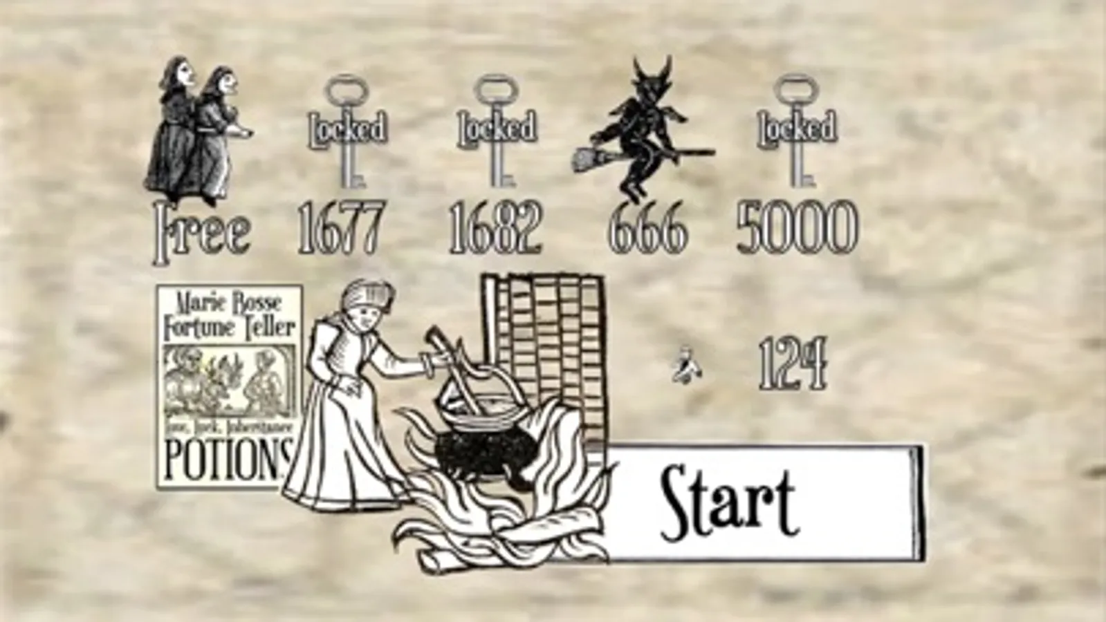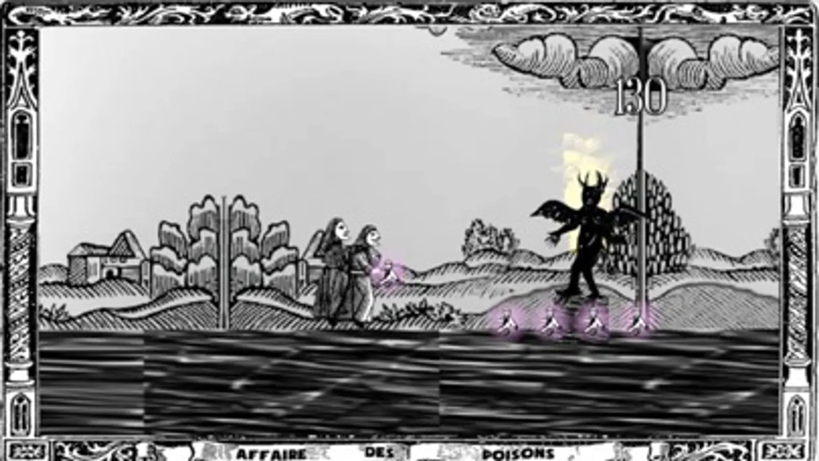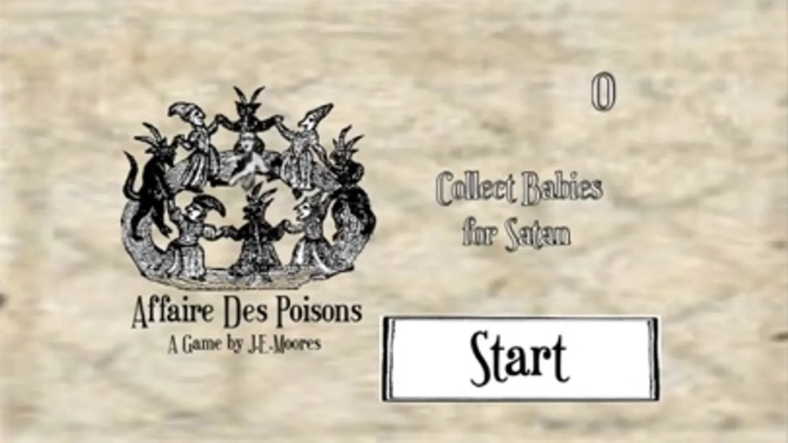 The game starts out with La Voisin running around the countryside with Madame de Montespan. The two of you are collecting all the babies you can find, you know, for Satan. You must avoid the angry mob of Bible thumpin’ church goers and find your way to Marie Bosse’s Potion Shop, where you can purchase different imps and familiars to do your evil bidding. Once you’ve paid Marie Bosse’s fee and unlocked the creature of your choice, you can play the game again with all new powers in the form of a flying demon, a witch on a broomstick, a very handsome goat, and many more. It’s wicked good fun, and you’ll only go to hell a little bit for playing this game! Just a little. Like your toe. It could be possible that your toe might go to hell for playing this game.