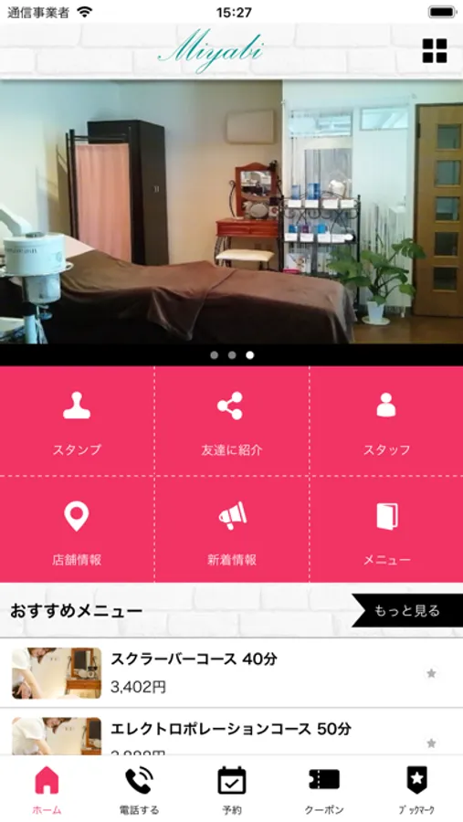 アプリを通して「エステサロンmiyabi」の新着情報やお得な情報をリアルタイムで受け取ることができます。