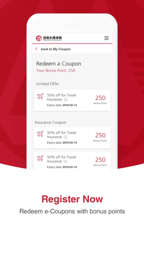 Now joining us as Privilege Member of CMB Wing lung Insurance, not only you can use our online personal insurance services anytime and anywhere, but can also enjoy the member's exclusive premium discount and earn bonus points. Act now and register as our Privilege Member to explore more special offers prepared for you.
