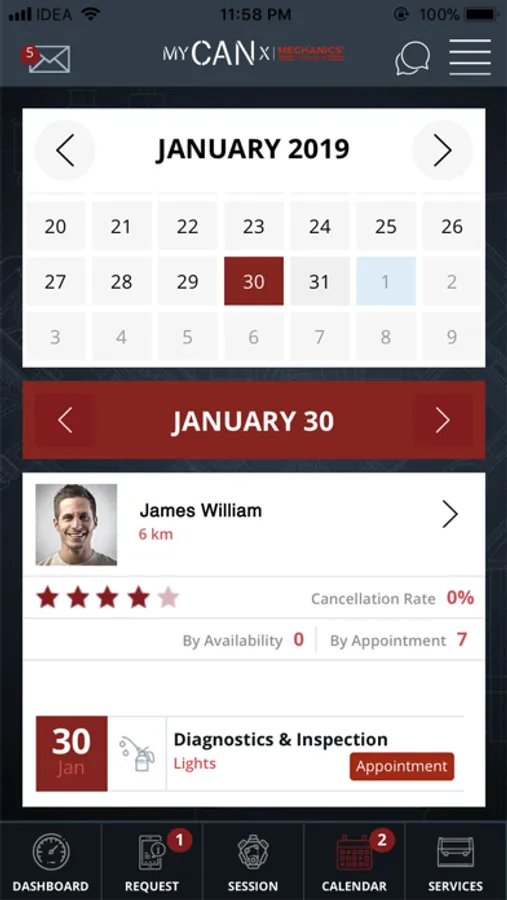 The myCANx app for Mechanics is a peer-to-peer marketplace for on-demand mobile mechanics, or skillful auto technicians. Mechanics can choose which jobs they want to take and set their own hours. The hassle-free experience of confirming service appointments in the myCANx app offers mechanics guaranteed rates per hour and also allows them to help others with their auto maintenance service.