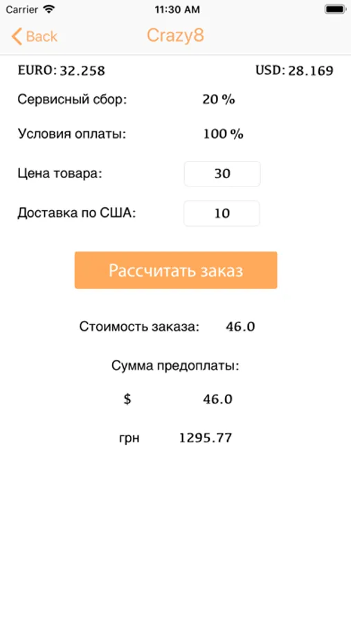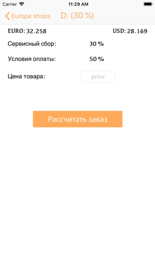 Установив приложение Eurocat, вы сможете быстро рассчитывать конечную стоимость Вашего заказа и сумму предоплаты. Для интернет-магазинов Германии вам нужно выбрать из списка сумму сервисного сбора выбранного магазина. Сервисный сбор для каждого интернет-магазина указан на нашем сайте. Далее ввести цену товара и нажать кнопку "Рассчитать заказ". Для интернет-магазинов США все еще проще - выбираете нужный интернет-магазин, далее вводите цену товара, стоимость доставки по США и жмете на кнопку "Рассчитать заказ".