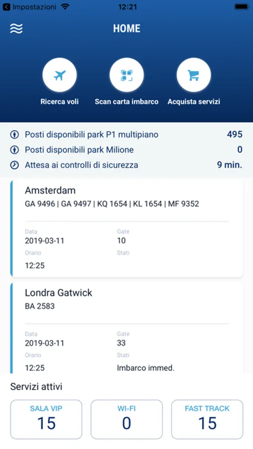 In this app, you will find information about Venice Airport's new Milione Club plan, and the new Milione Card, designed to bring you lots of benefits so that you get the most of your experience in the Airport. You can choose the package of benefits at the price you prefer. The app also provides information such as: flight status, flight delay, transport information, Airport guide, car-park maps, sales promotions, and weather forecasts.