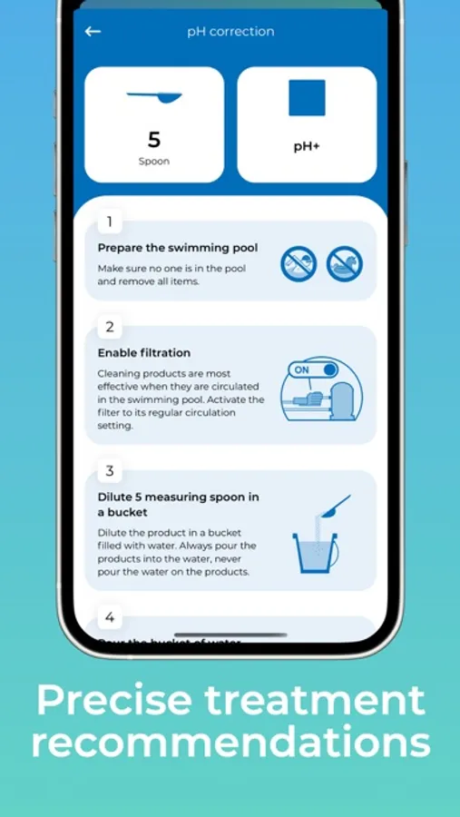 When an addition of products is necessary, the user is notified. The application explains step by step the steps to follow for optimal efficiency and safety.