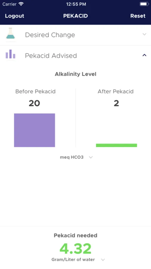 PeKacid Advisor helps you to quickly adjust the water pH to the desired level by taking into account your initial water pH and its bicarbonate level.