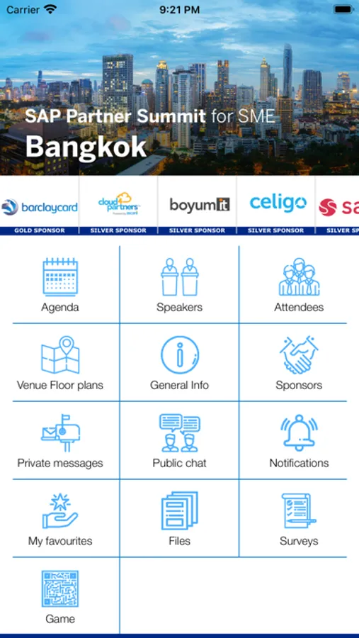 This App is the main point of access to the relevant information of the 3 big events across 3 regions: Asia (Bangkok), Europe (Vienna) and Americas (Panama City) for the SAP Partner Summit for SME. It is a unique tool that helps you meet other SAP Partners and colleagues. With this App you enhance your interaction and engagement within each of the events: