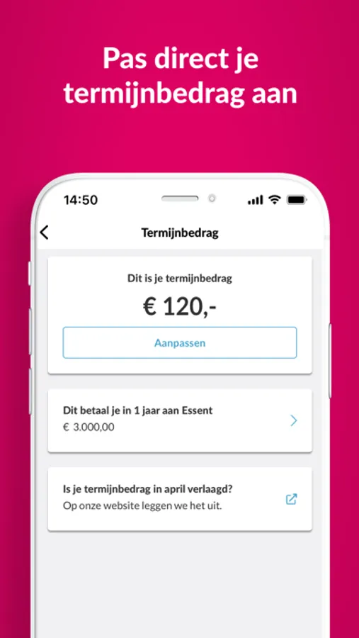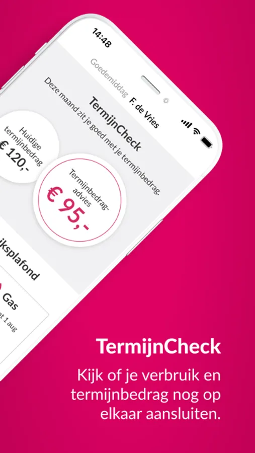 Met de TermijnCheck zie je of je verbruik en termijnbedrag nog op elkaar aansluiten. Is dat niet het geval? Dan pas je het direct aan. Zo voorkom je dat je moet bijbetalen op je jaarrekening.