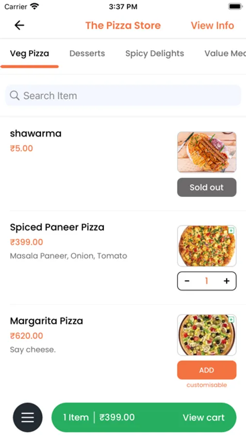 ●Restaurants Items with Menu
