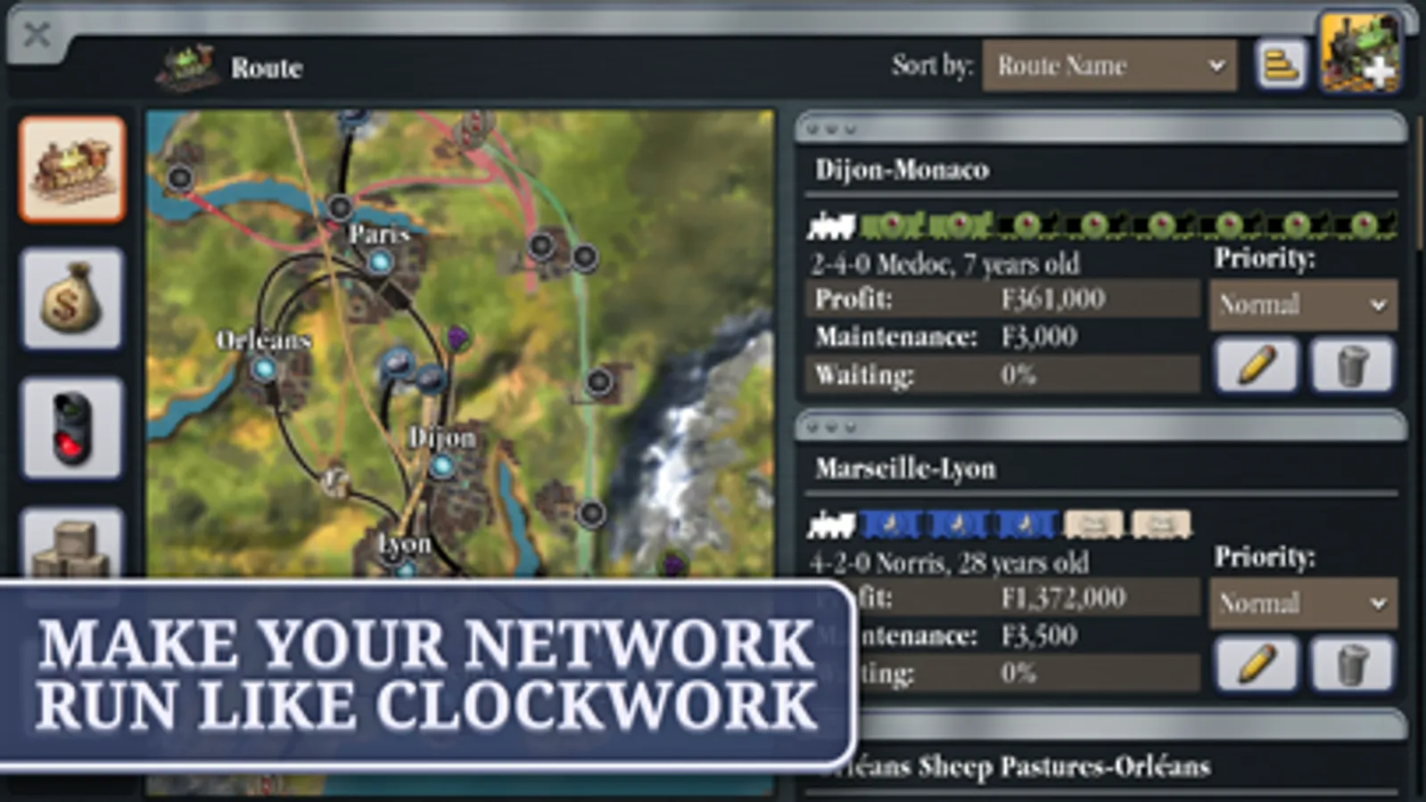 Carefully lay tracks and design routes to transport freight and passengers, refining and improving operations until your railroad runs like clockwork.