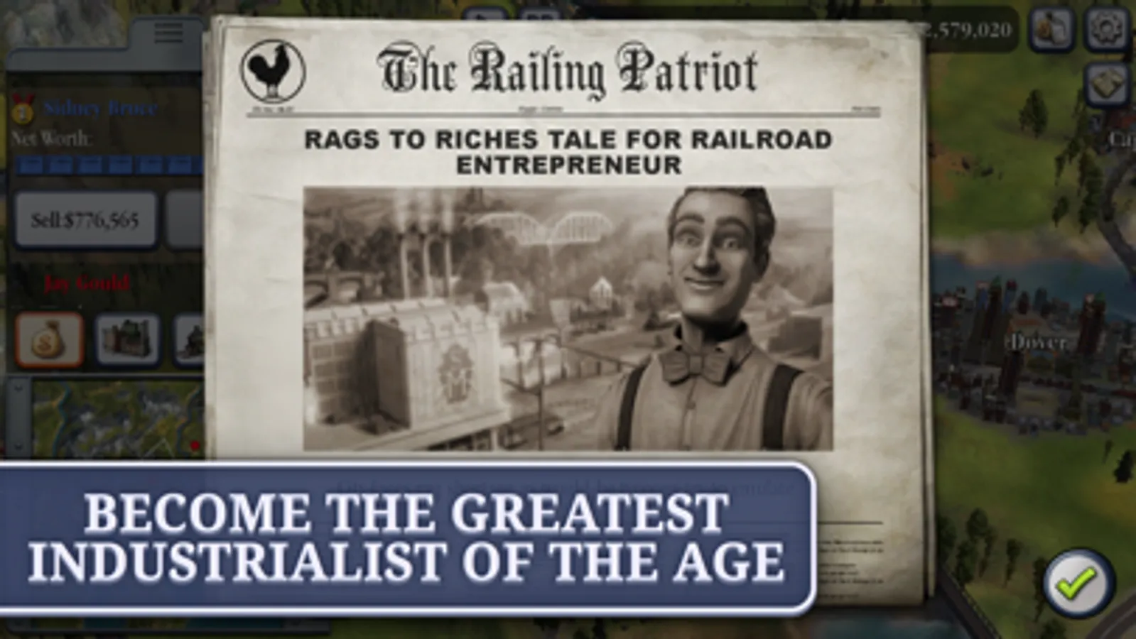 Grow profits through efficiency, innovation, and shrewd business decisions as you acquire valuable patents, trade stocks, and build or buy industries. Compete with world leaders and industrial titans to achieve the ultimate goal — becoming the greatest railroad tycoon of the age!