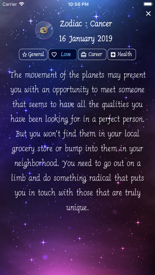 • 4 categories of predictions (General, Love, Career and Health)