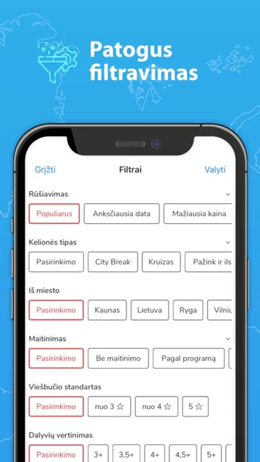 • Easy filtering - By selecting your priorities and interests in the filter, you can easily find the most relevant travel offers