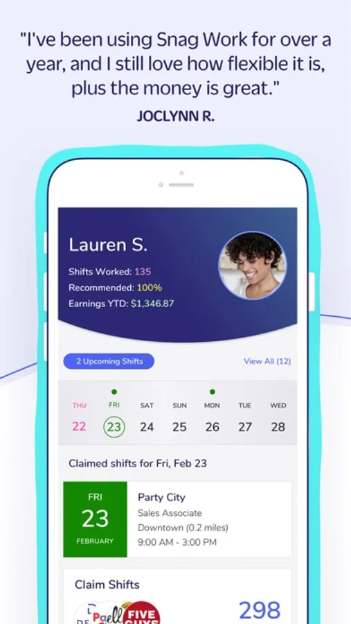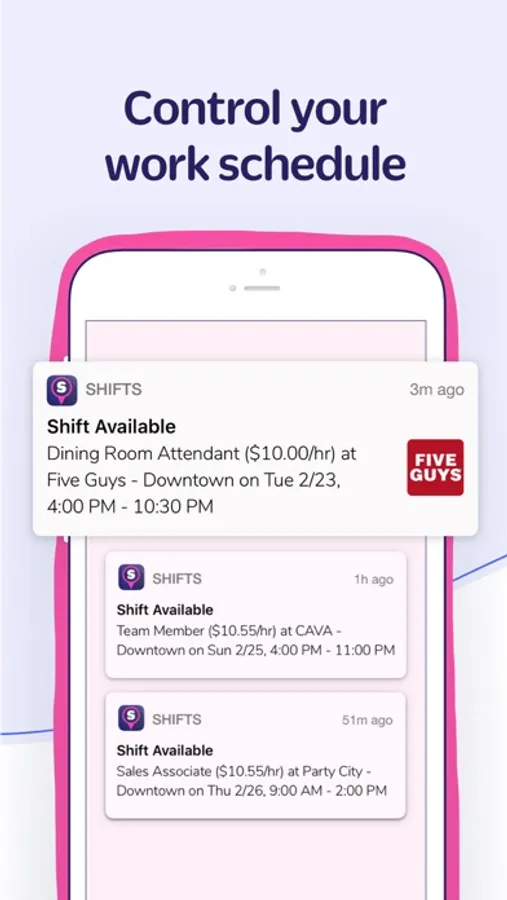 1. Snag a shift - You're instantly alerted when businesses post new shifts that fit your availability. You choose when and where you want to work.