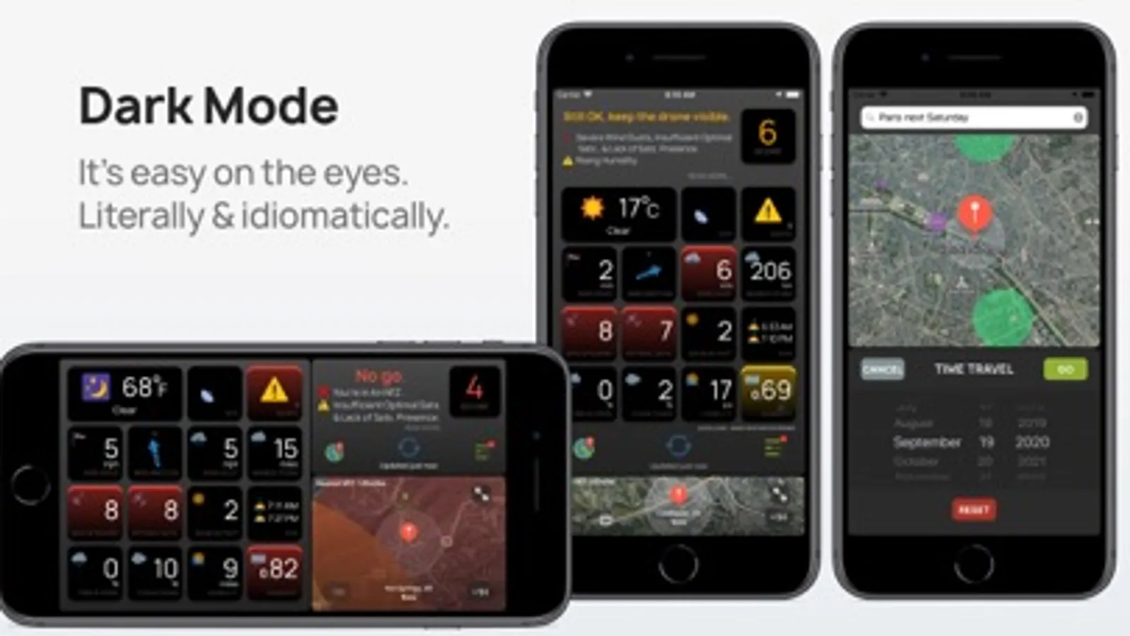 While the default Light Theme is meticulously designed in high-contrast for bright & sunny environment, the DARK THEME is more easy on the eyes. Both literally & idiomatically. It's perfect for night time flying or checking AURA indoors.