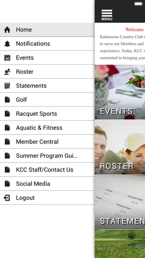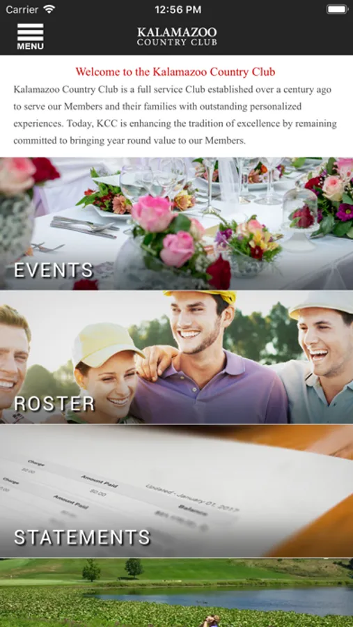 Everything you love about the Kalamazoo Country Club website now in an easy to use mobile app! Our time-saving app will allow you to: connect with other members, register for events, place to-go orders, pay your statement and receive text notifications from the club.