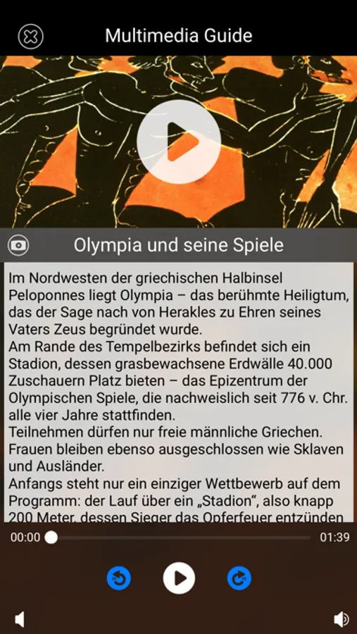 Die App des Deutschen Sport & Olympia Museums ist der digitale Begleiter durch 2.500 Jahre Sportgeschichte. Sie bietet eine spannende und emotionale Zeitreise von der Antike bis zur Moderne, bei der unvergessene Highlights, herausragende Sportler, triumphale Siege, aber auch bittere Niederlagen hautnah erlebt werden können.