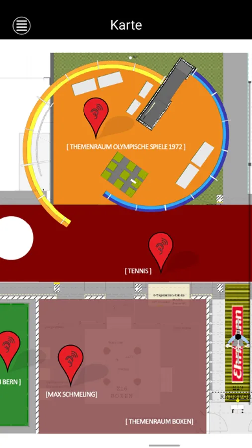 Die App basiert auf der IBeacon-Technologie. Ein IBeacon ist ein kleiner Bluetooth-Funksender, der sich automatisch mit dem Smartphone verbindet. In der Ausstellung befinden sich insgesamt 60 IBeacons, kommst Du in die Nähe eines IBeacons, löst dieser selbstständig neue Inhalte in der App aus. Auf einer Übersichtskarte sind alle Standorte der IBeacons festgehalten, aber auch markante Aufkleber machen auf die einzelnen Stationen aufmerksam.