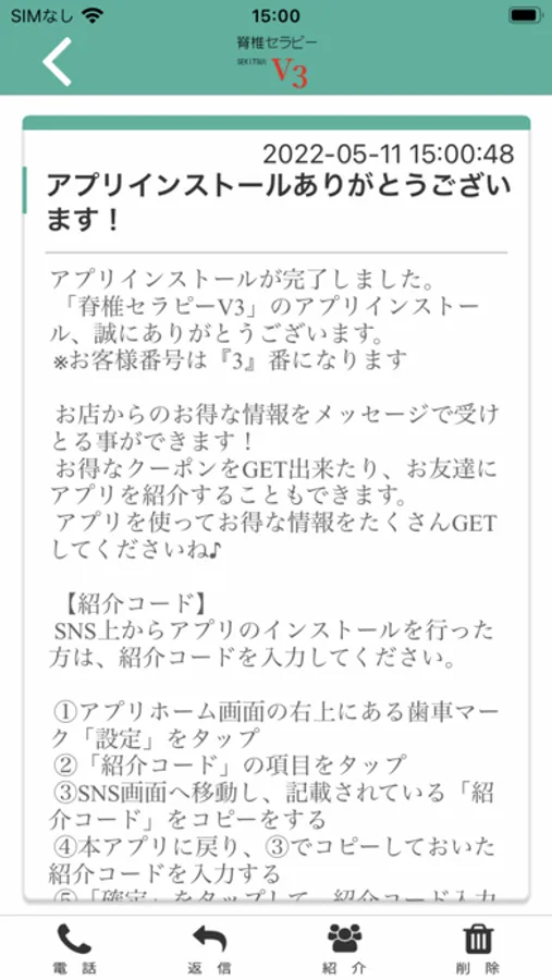 脊椎セラピーのアプリをSNSを通じてお友達に紹介する事ができます。