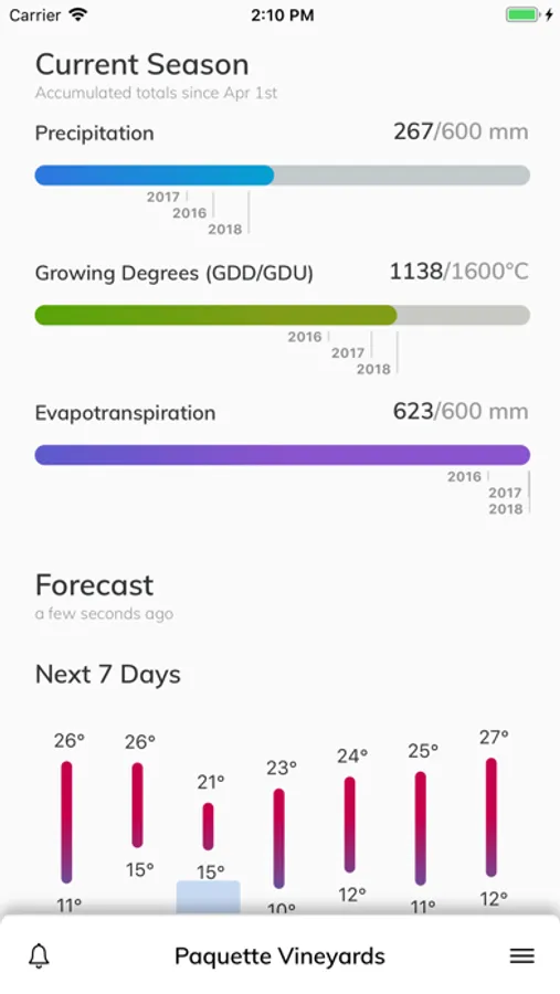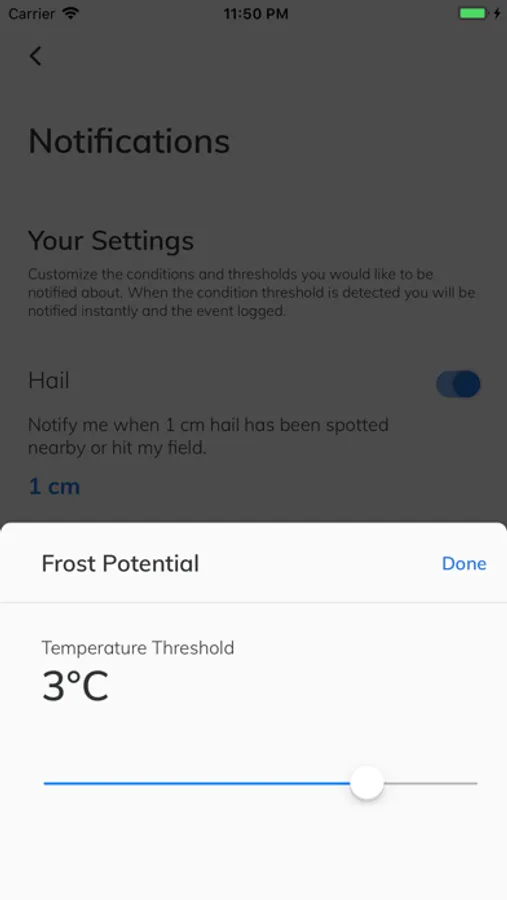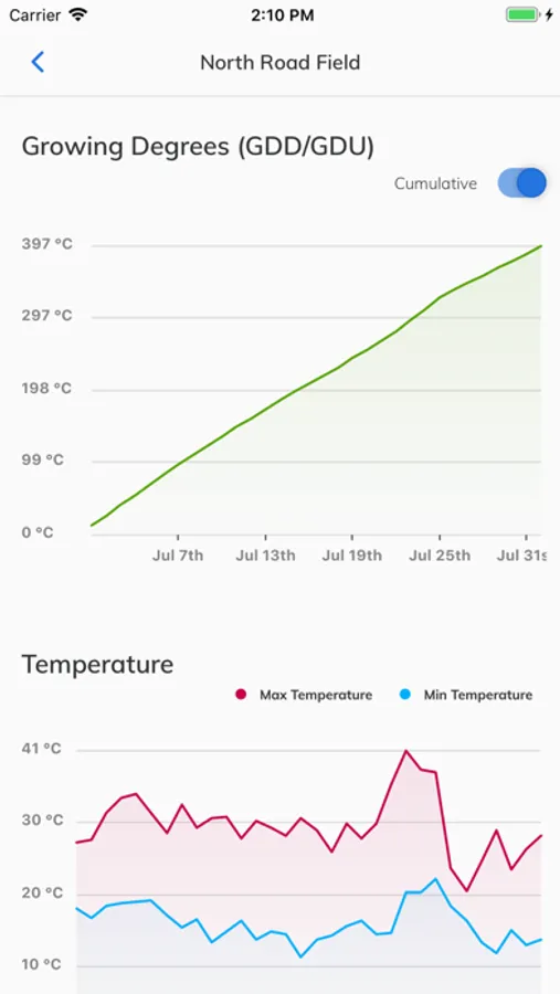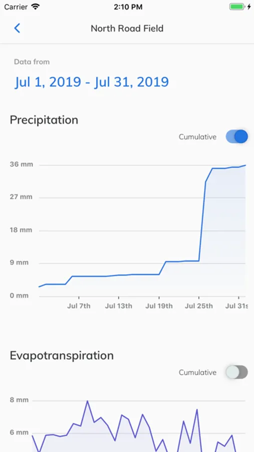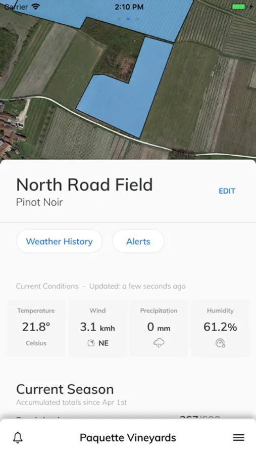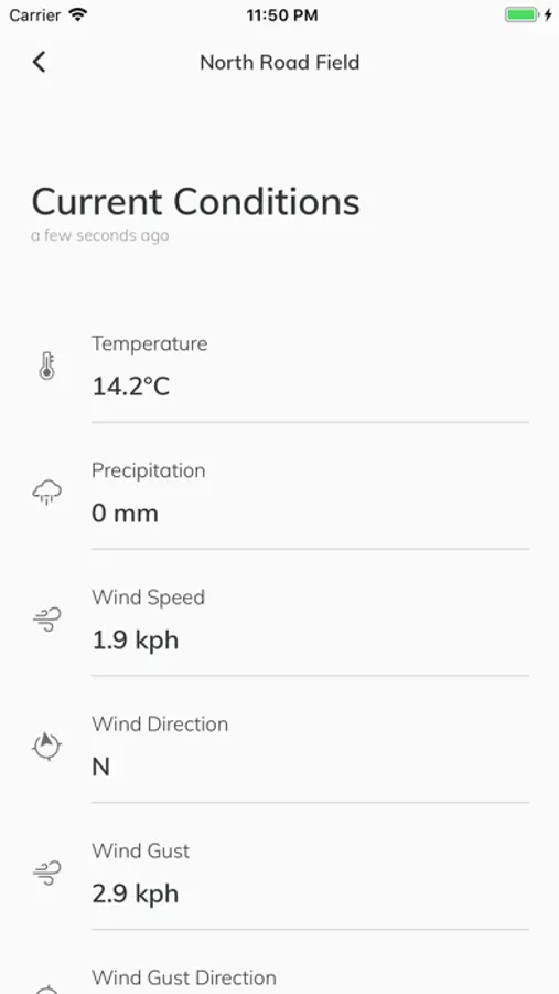 • Scroll down to see all weather conditions on each of your fields