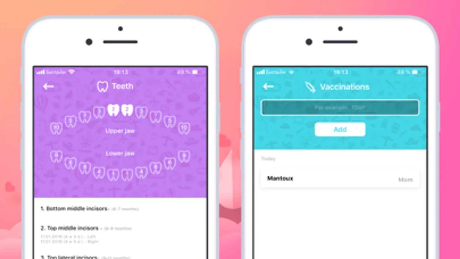 Thanks to reminders, you'll never forget important events such as vitamins and physicals.