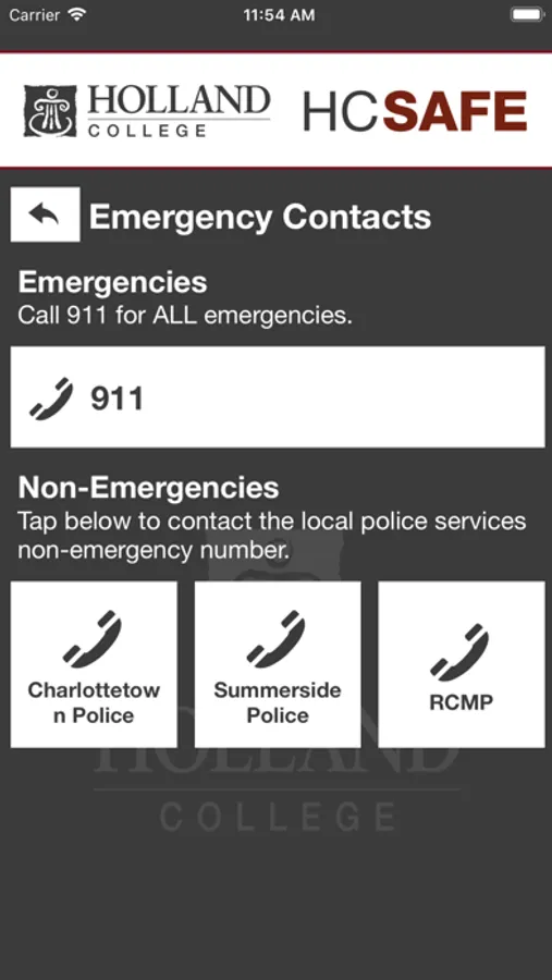 - Emergency Contacts: Contact the correct services for the Holland College area in case of an emergency or a non-emergency concern