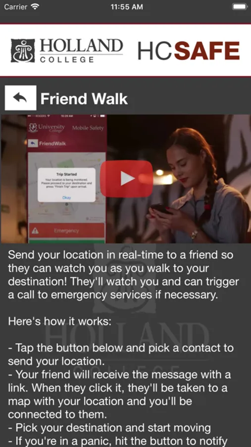 - Campus Safety Resources: access all important safety resources in one convenient app.