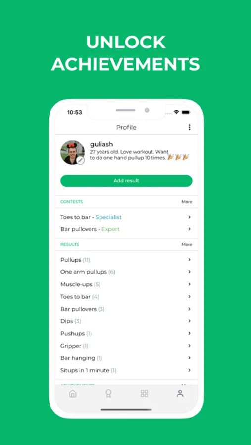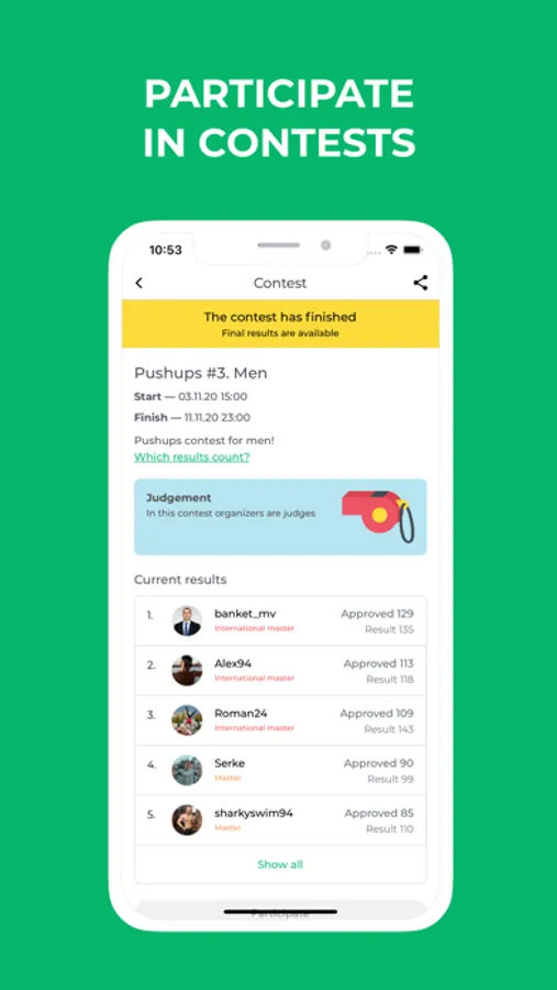 Participate in online sport contests. Share your sport results with your friends. Invite them and find out who is stronger.