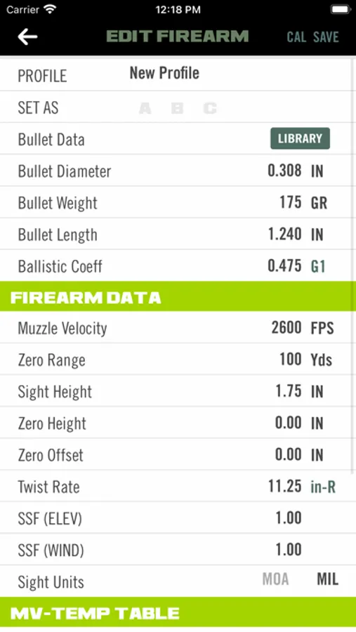 Ballistics® bullet library.