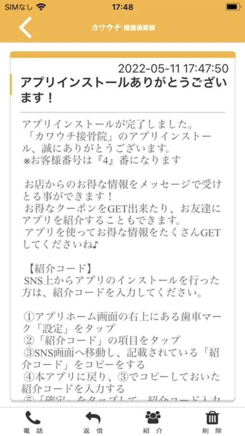 カワウチのアプリをSNSを通じてお友達に紹介する事ができます。