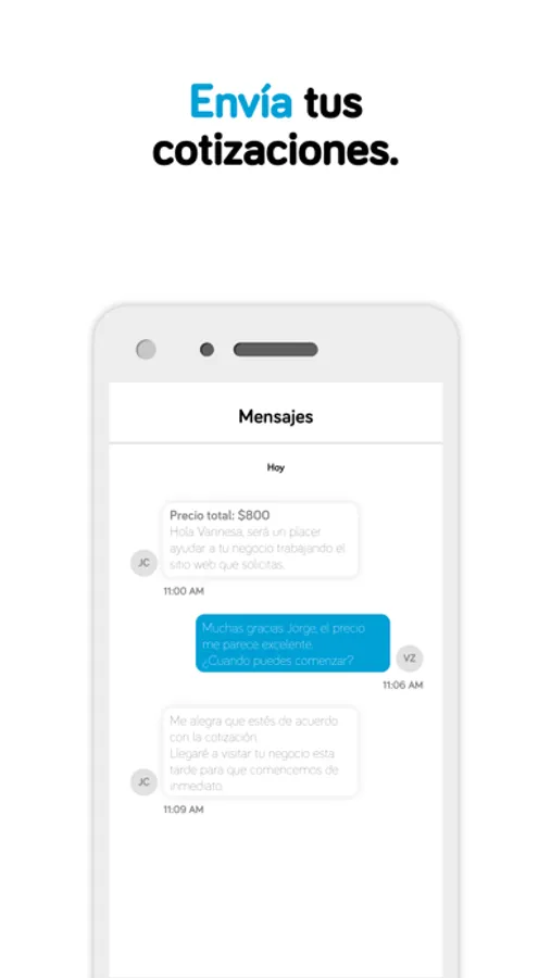 • Envía mensajes de ida y vuelta en privado con los contratistas que desee sin intercambiar números o correos electrónicos (lo cual es muy útil)