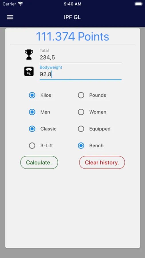 This is the International Powerlifting Federation app for comparing lifters of different bodyweight categories. It's good for single or three-lift meet results for both females and males, raw or equipped. Download it and see where you are.