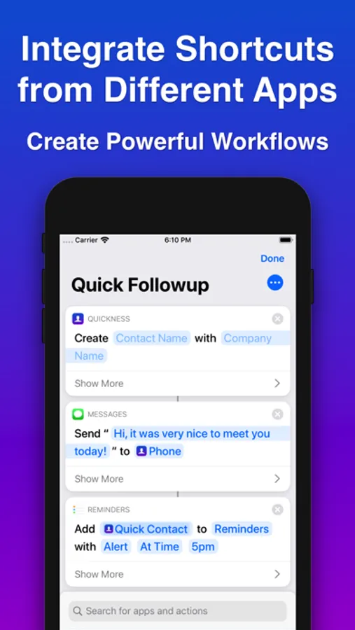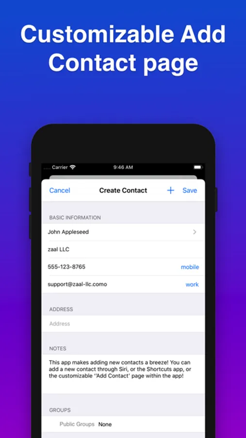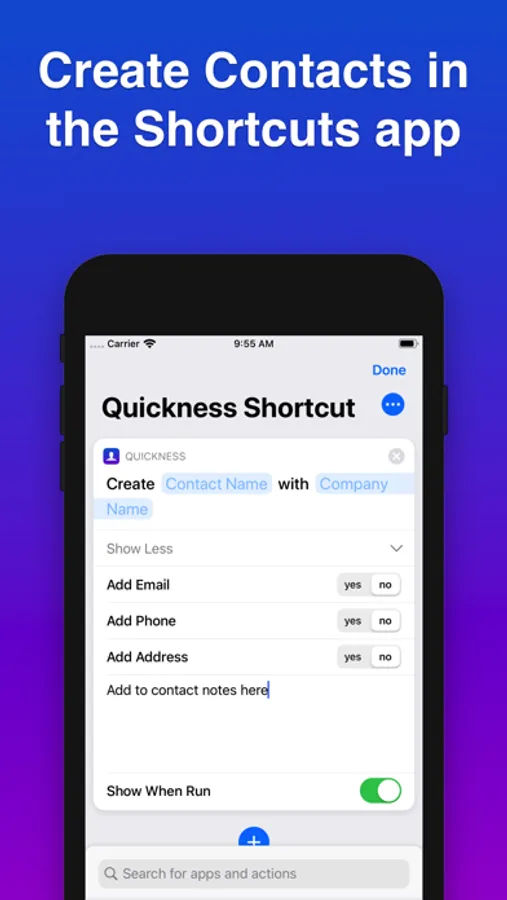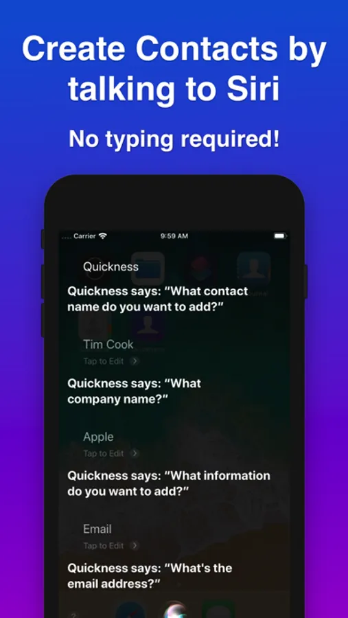 Quickness uses the power of Siri and the Shortcuts app to let you create new contacts, quickly and efficiently!
