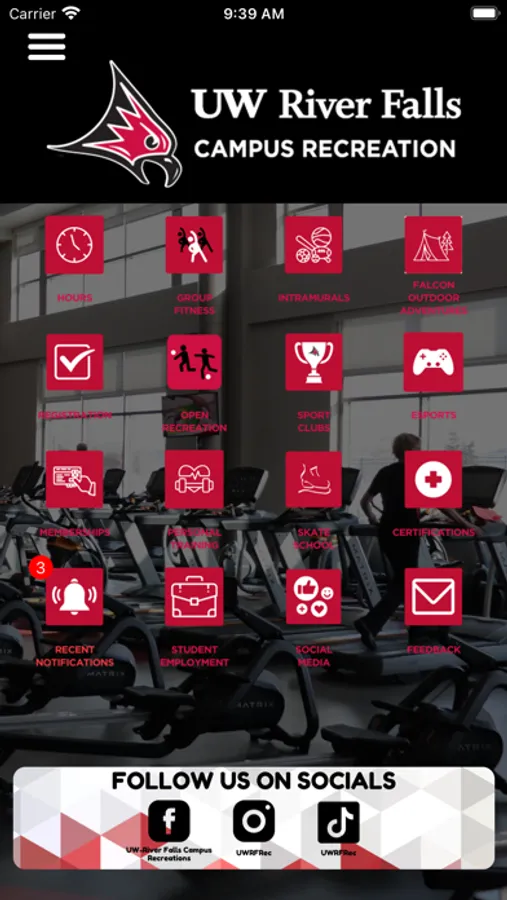 UWRF Campus Recreation – The official app for University of Wisconsin – River Falls Campus Recreation; including Intramural Sports, Sport Clubs, Recreational Services, Falcon Outdoor Adventures and Hunt Arena Skating School Learn to Skate programs.