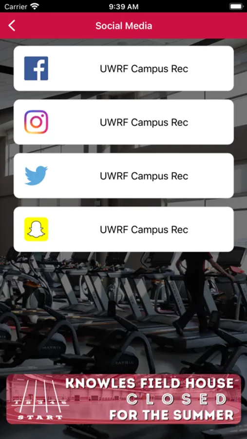Learn about Memberships, Group Exercise, Personal Training, Falcon Outdoor Adventures, Climbing, Rental Center, Trips, Learn to Skate, Open Recreation and more. Find your fit with UWRF Campus Recreation by downloading our NEW mobile app! Also find answers to questions, give feedback, learn about facilities, programs and more. Have the facility schedule with you on your phone wherever you go.