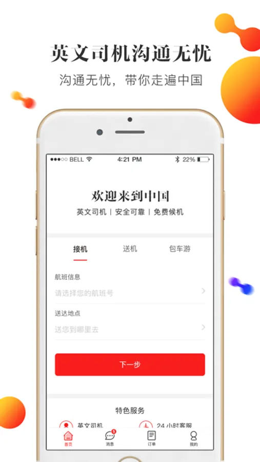 一款为外国人提供英文包车的APP