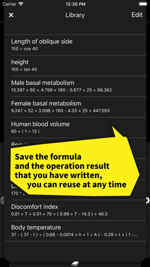 The formulas described can be saved together with the results of the calculations and easily shared among members.