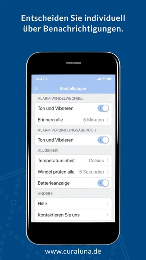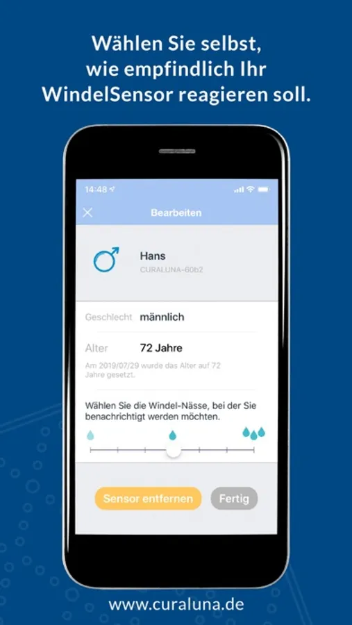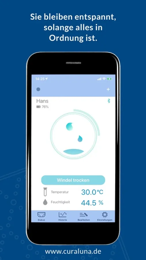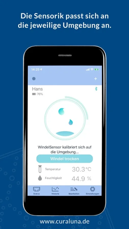 Einfach Nehmen Sie Ihren WindelSensor von CURALUNA in Betrieb und schon verbindet sich die WindelApp mit Ihrem Sensor. Los geht’s. Sicher