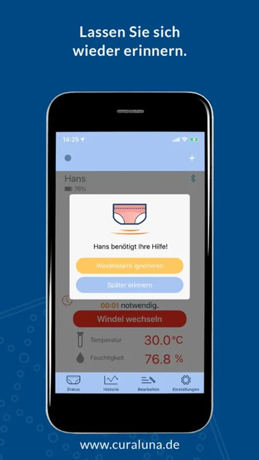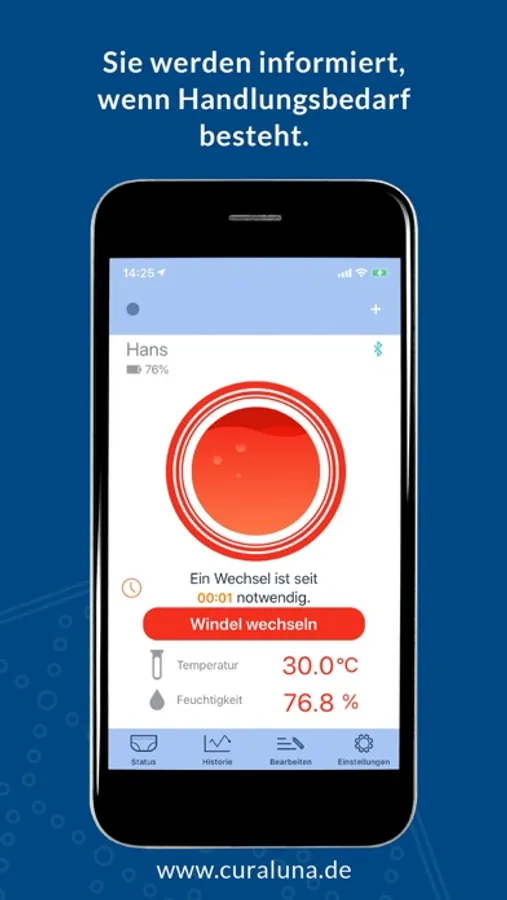Sie oder der von Ihnen gewünschte Betreuer wird umgehend unterrichtet, wenn die Windel gewechselt werden sollte.