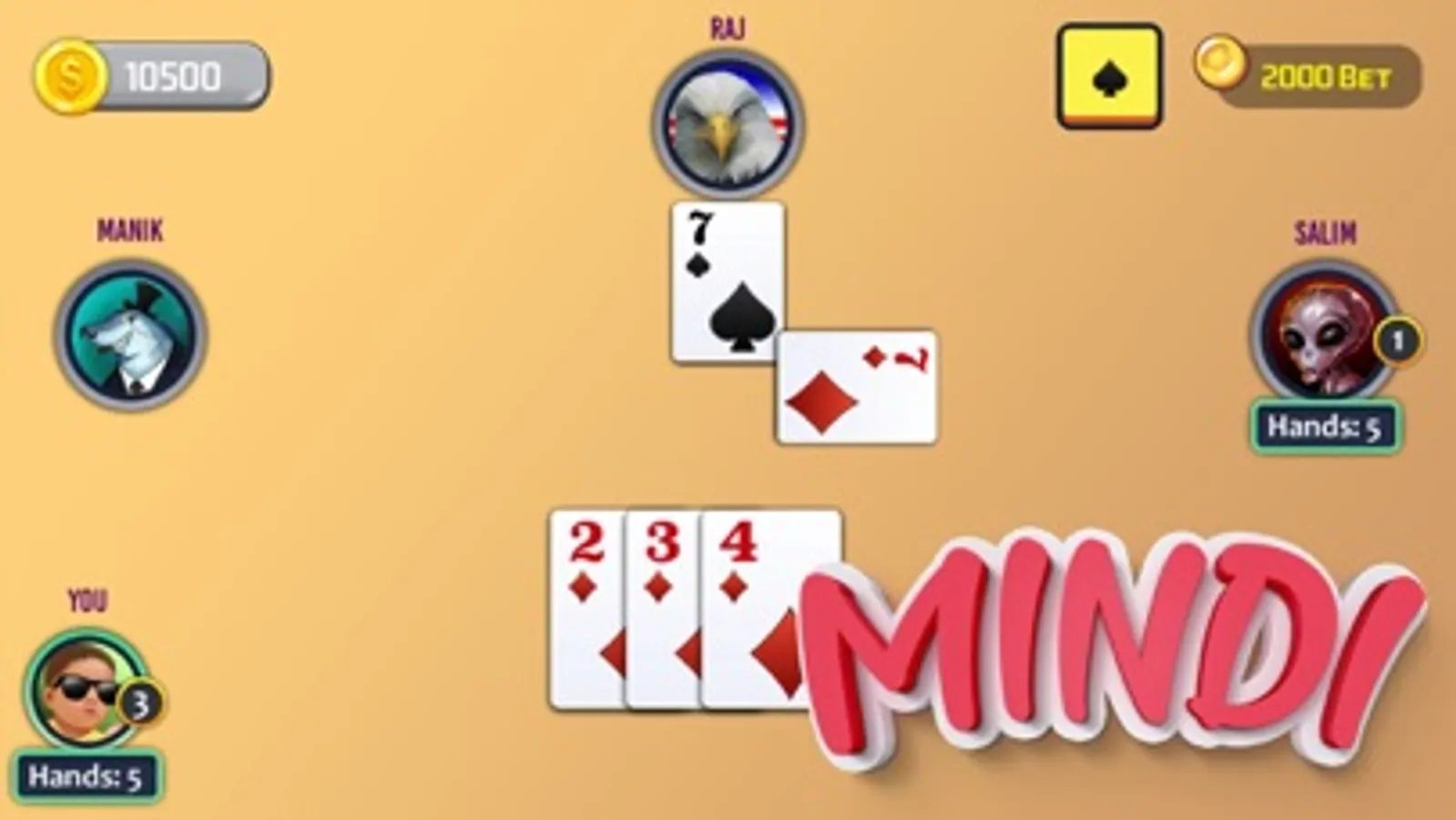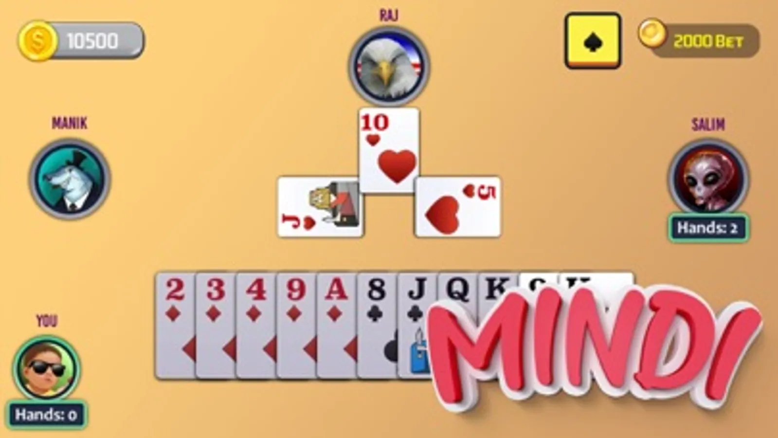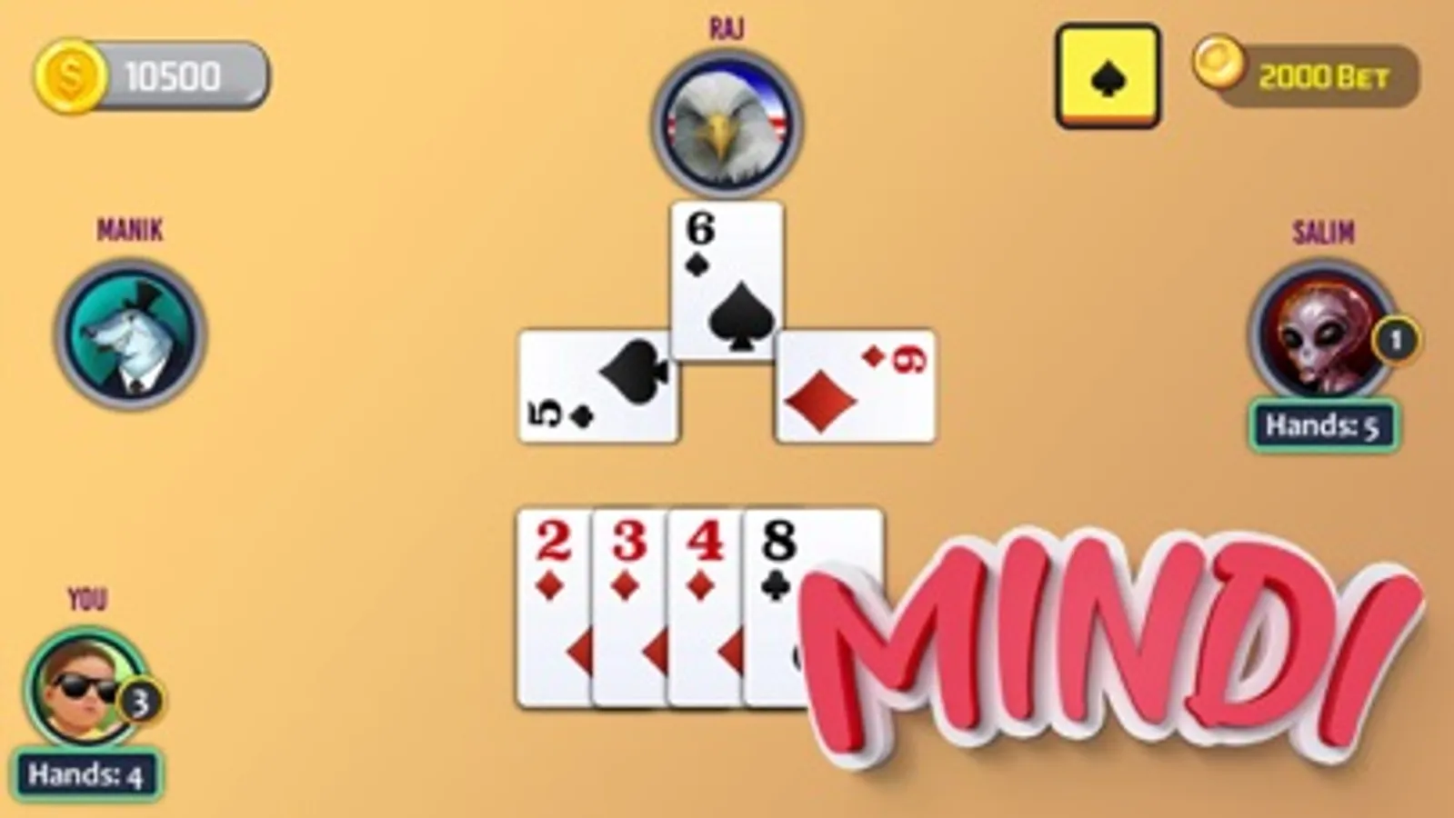 Mindi is a fun trick taking card game hailing from India, where it is quite popular. It is a mind blowing Indian card game. Card games are very popular everywhere. People enjoy them as they just kill boredom. It is also known as Mindicote, MindiKot, Mendhi Coat, Mindi Multiplayer, Mindi Cote, Mendicot, Dehla Pakad (means "Collect the tens")! A slight variation of Mindi is also known as Coat piece. Mindi is considered to be a game for smart people and needs some strategy to win it. Mindi is the traditional, time passing game in India. People of India love to play Mindi for countless hours with their Family & Friends. You might have played many card games but there is nothing like Mindi.