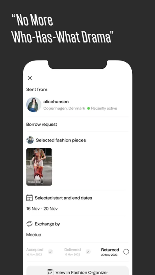 From the moment a swap or borrow proposal is accepted to the exciting final step of marking your fashion pieces as delivered or returned, Popswap’s Fashion Organizer offers unmatched convenience and control.