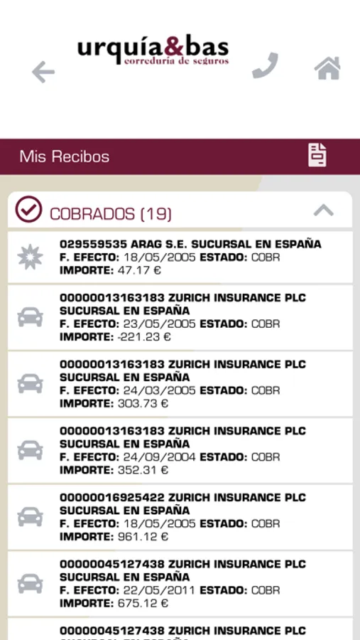 -Consulta de clientes, pólizas, recibos y siniestros.