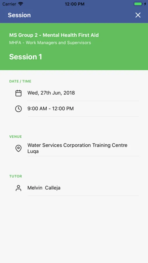 including date, time and venue, general information about Mental Health First Aid and a number of
