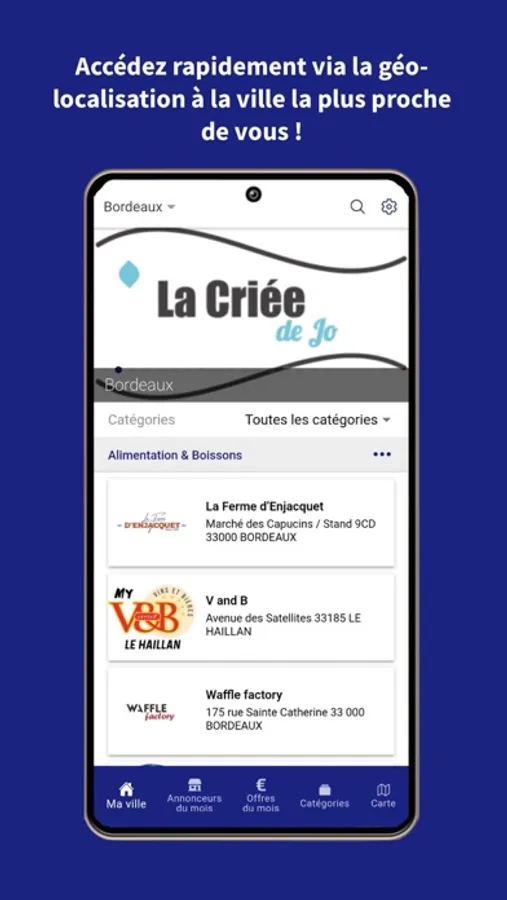 avec toujours des visuels de qualités pour mettre en avant les entreprise sélectionnées par "côté ville" sur l application.