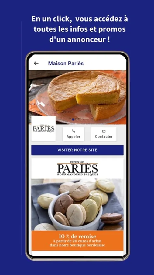 les coordonnées téléphoniques et géo-localisation du commerce sélectionné par l utilisatrice ou l utilisateur.